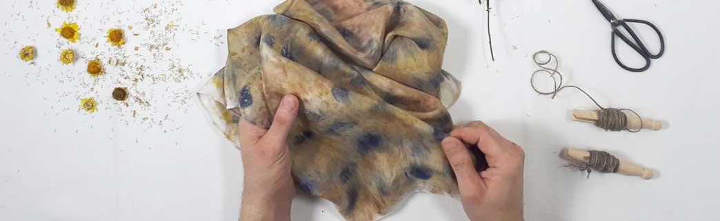 Poco es sabido que la seda es una de las fibras con más trayectoria en la Historia de los Tintes. Es por eso que en The Dyer’s House estamos incorporando varios cursos (tanto de iniciación como profesionales) dedicados a esta mágica fibra, cuya suavidad y propiedades textiles aún no han podido ser imitadas. De hecho es una de las fibras más populares en Ecoprint. Si te fijas, es muy común ver pañuelos de seda estampados con esta técnica aunque, obviamente, puedes aplicarlo a cualquier otro tipo de textil. En este curso introductorio le dedicamos varios capítulos a conocer mejor la que es una de las grandes protagonistas en Ecoprint.
